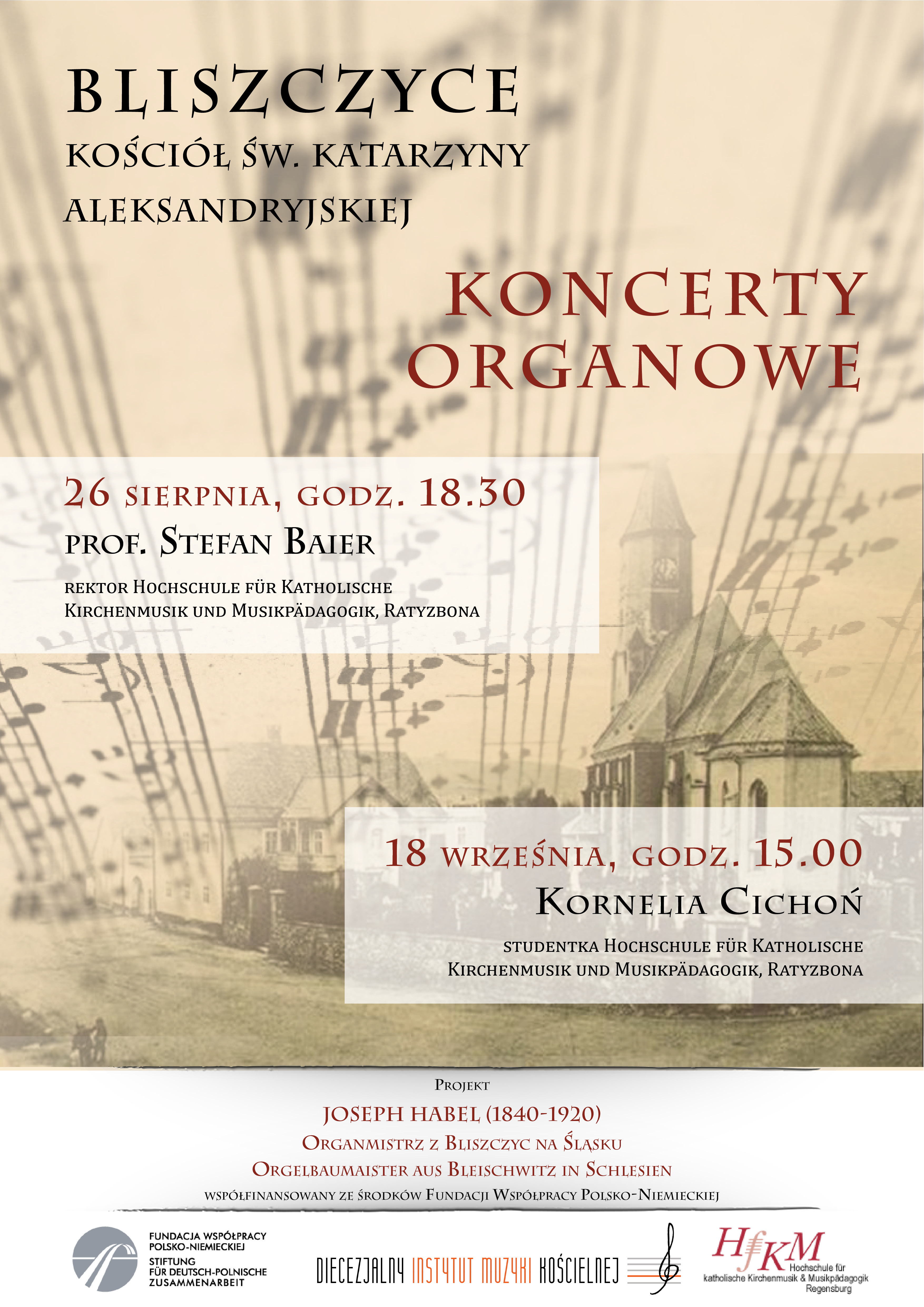 Diecezjalny Instytut Muzyki Kościelnej w Opolu (dyr. ks. prof. UO dr hab. Grzegorz Poźniak) w partnerstwie z Hochschule für Katholische Kirchenmusik und Musikpädagogik w Ratyzbonie (rektor prof. Stefan Baier) realizuje projekt badawczy ze środków Fundacji Współpracy Polsko-Niemieckiej zatytułowany Joseph Habel (1840-1920) – organmistrz z Bliszczyc na Śląsku. W ramach projektu odbędą się dwa koncerty organowe na instrumencie Josepha Habela w kościele pw. św. Katarzyny Aleksandryjskiej w Bliszczycach.