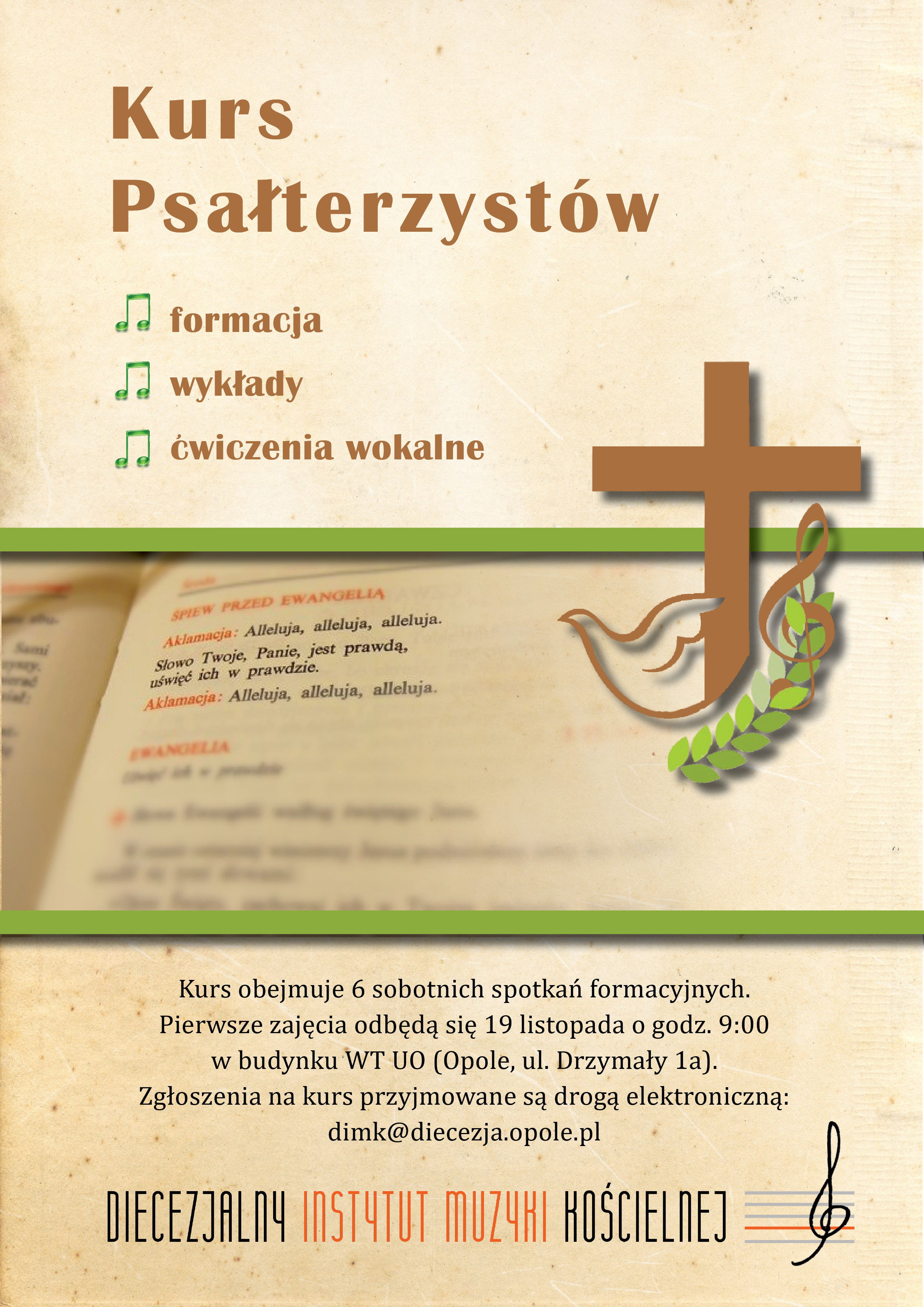 Diecezjalny Instytut Muzyki Kościelnej ogłasza nabór na Kurs Psałterzystów.