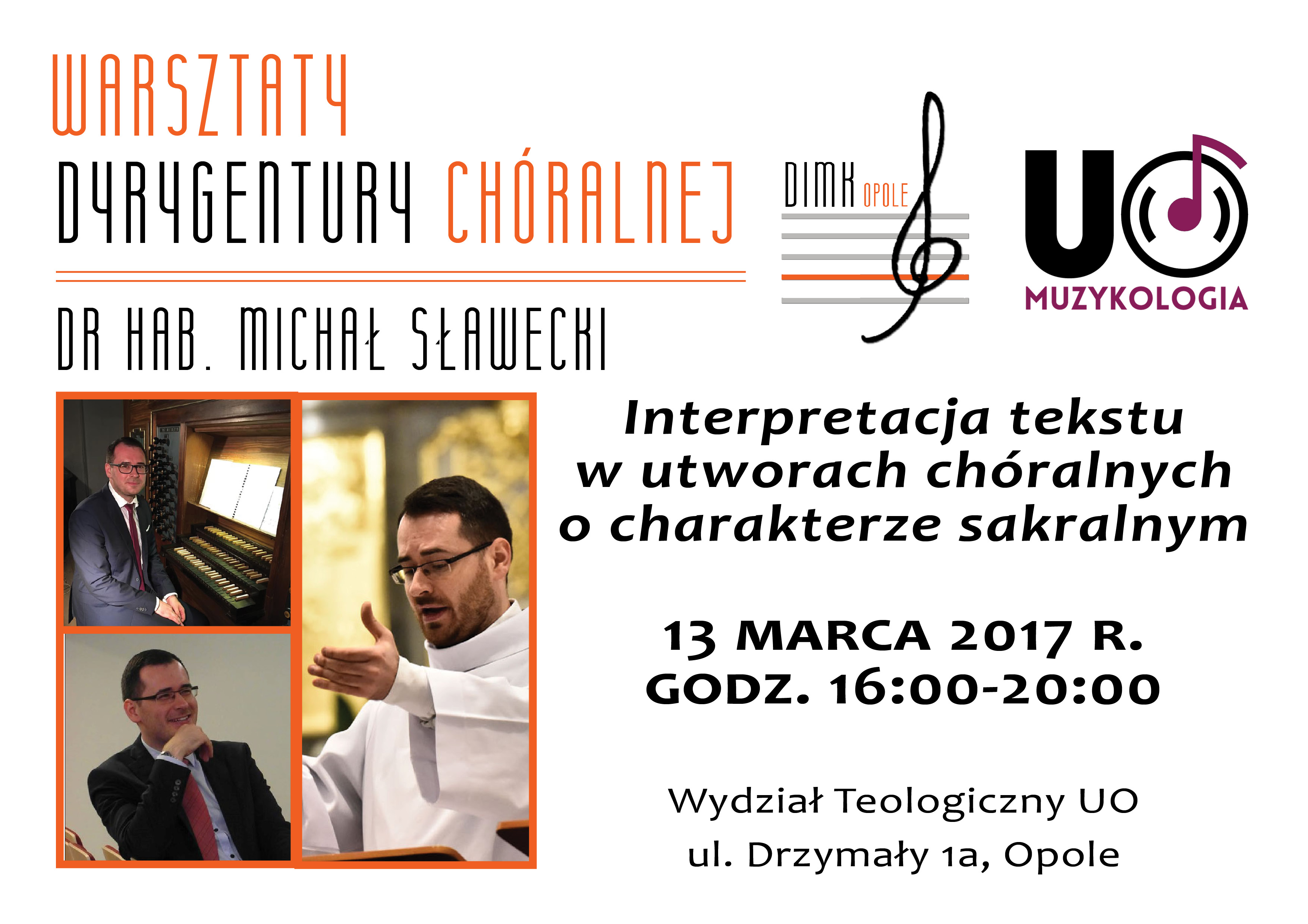 W imieniu Muzykologii Uniwersytetu Opolskiego oraz Diecezjalnego Instytutu Muzyki Kościelnej w Opolu, bardzo serdecznie zapraszamy do udziału w Warsztatach Chórmistrzowskich Wpływ gestu dyrygenta na technikę wokalną chóru.